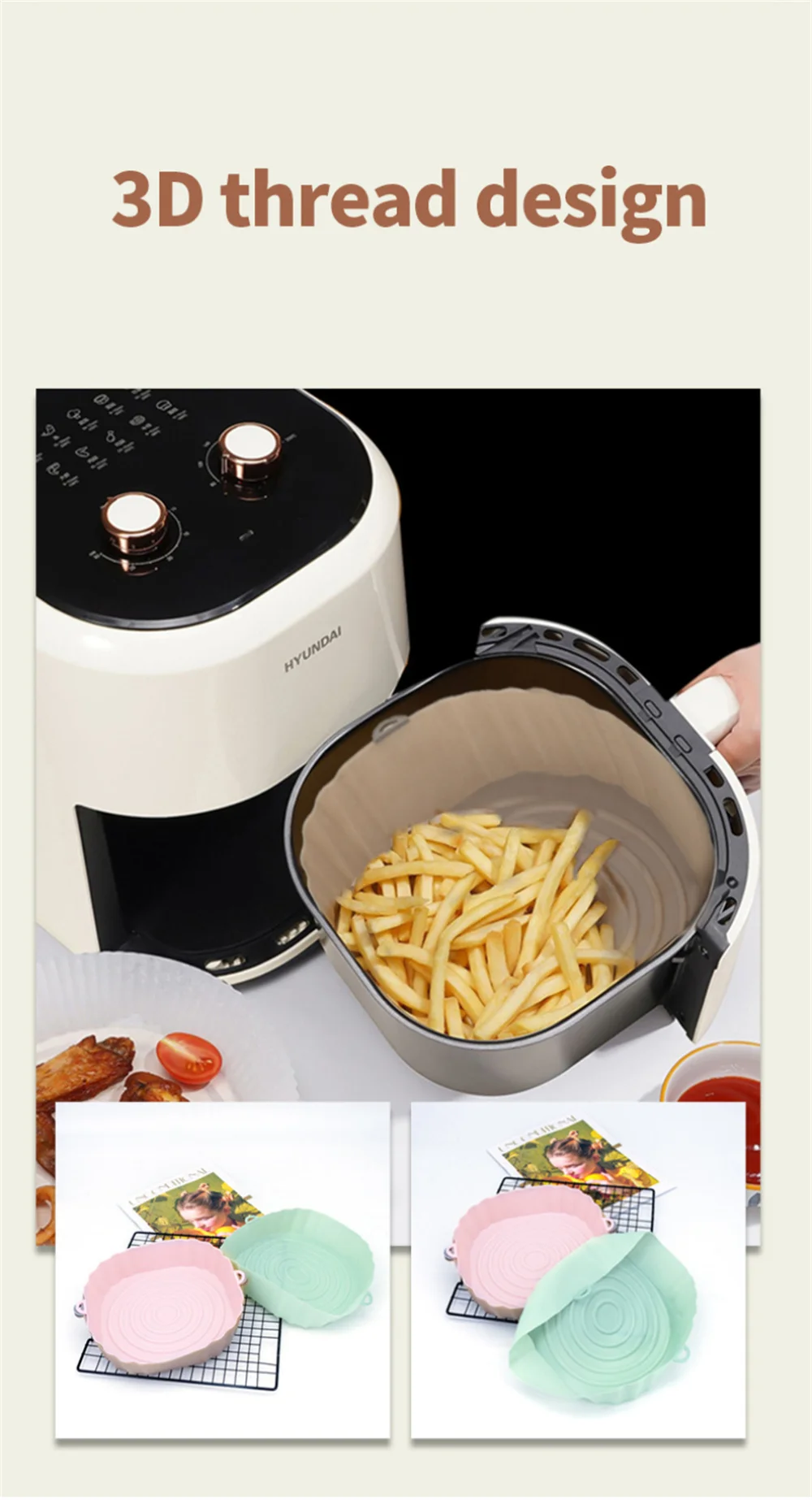1/2/3PCS Reusable Air Fryer Silicone Pot Oven Baking Tray Airfryer Silicone Basket Pizza Fried Chicken Grill Pan Mat for Kitchen