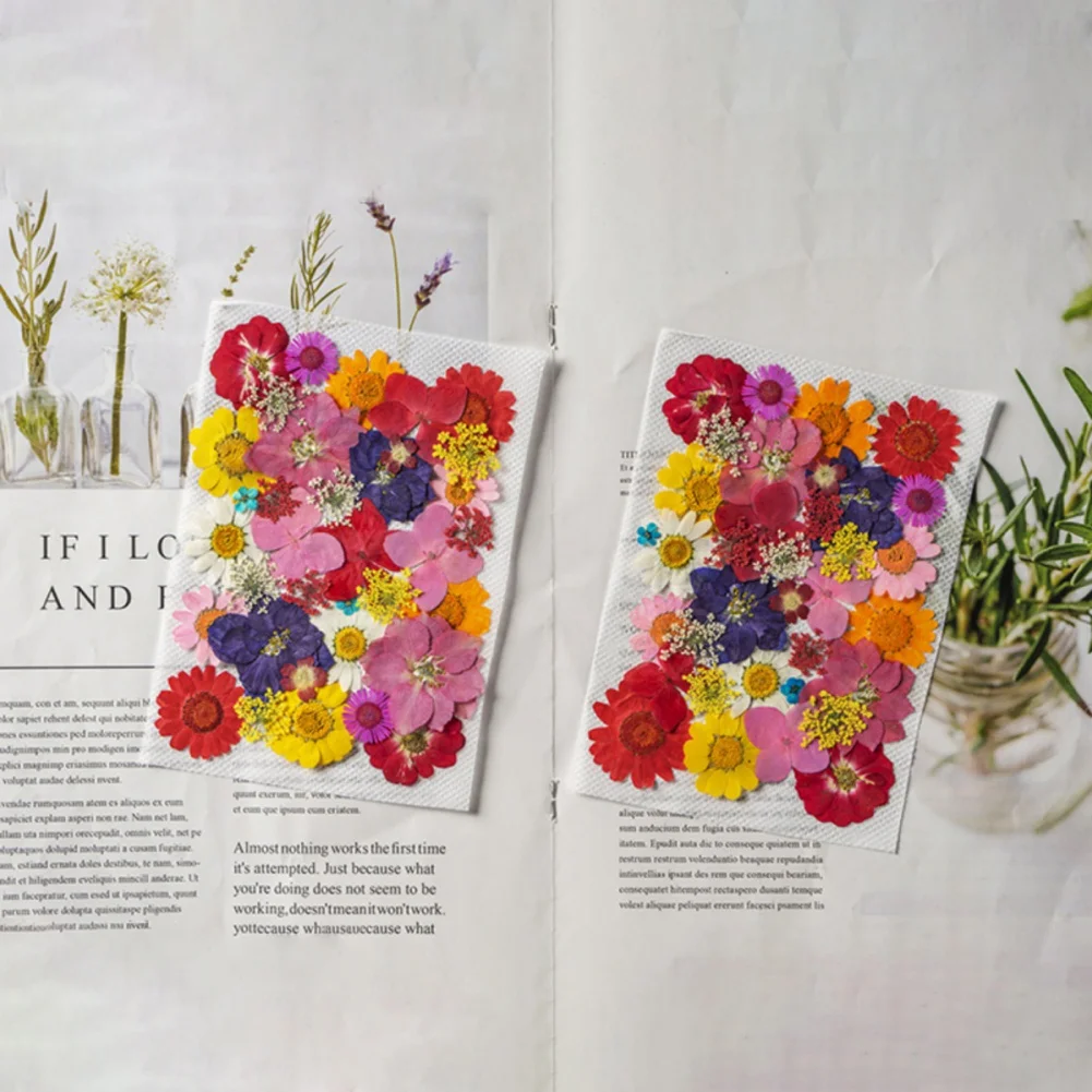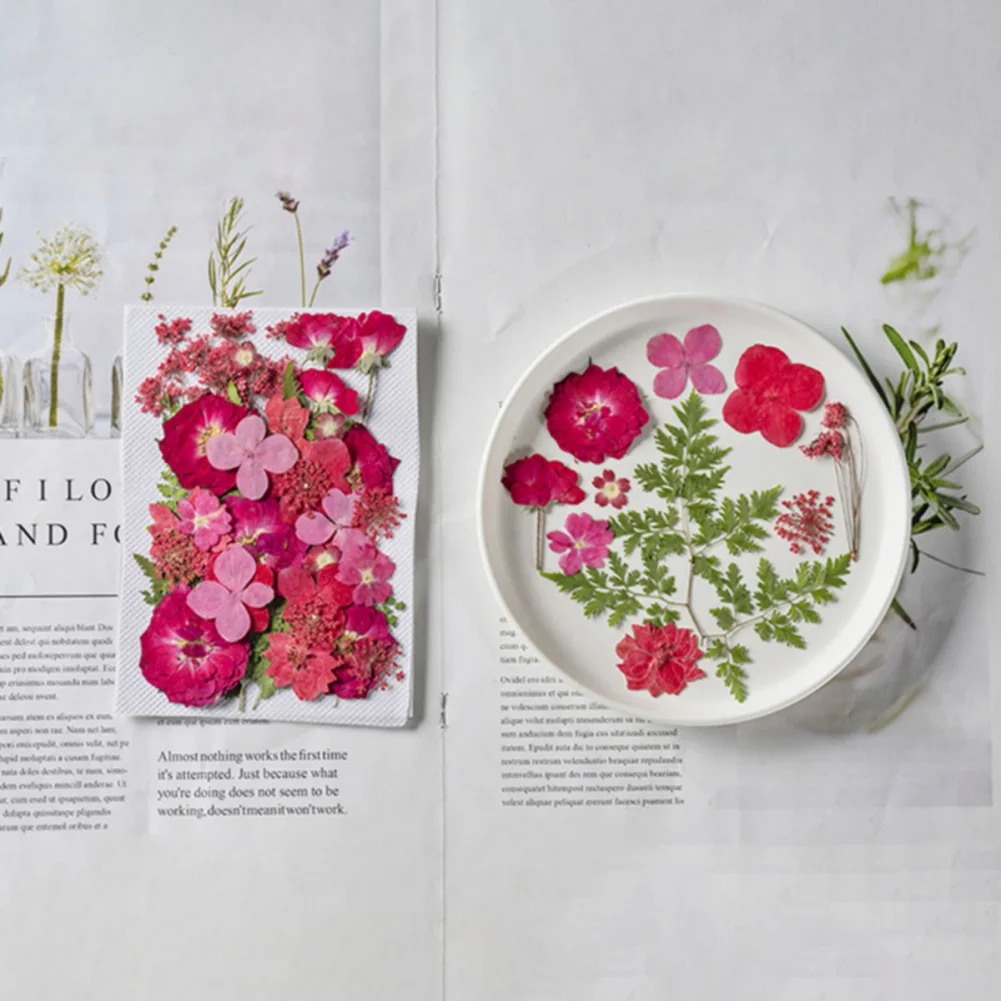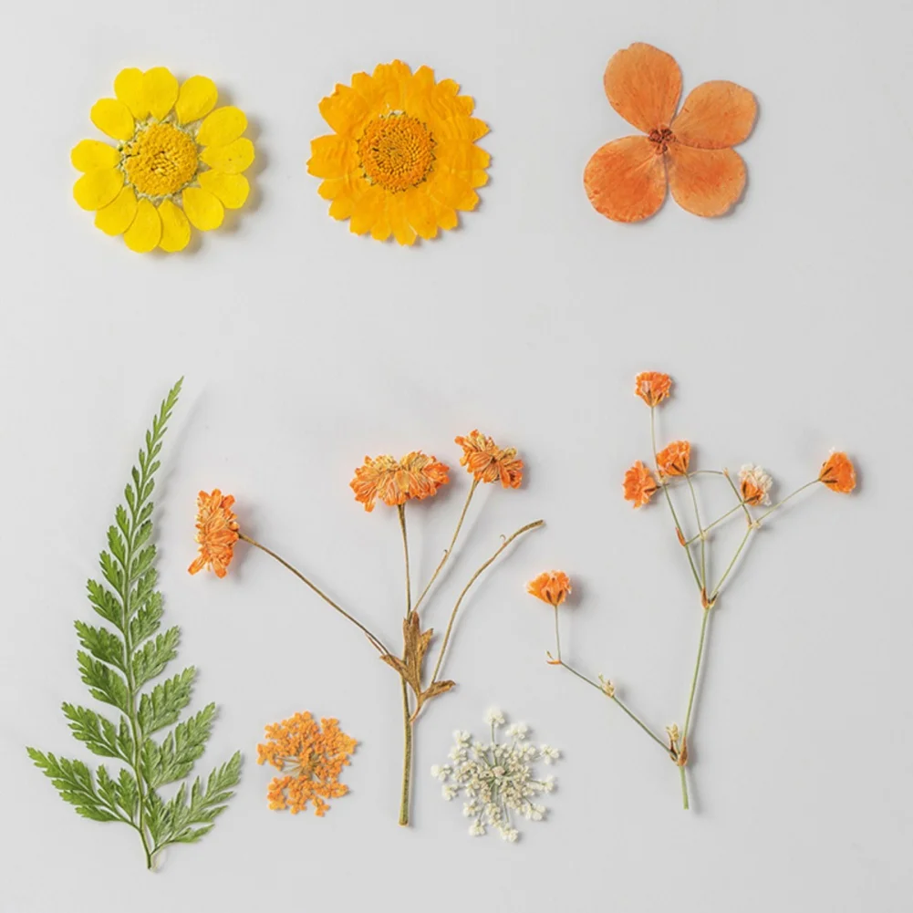 Natural Botanical Materials: Our pressed flowers and leaves are meticulously crafted from real, natural blooms, making each piece truly one-of-a-kind. Please note that due to their natural origin, flower colors and shapes may slightly vary, showcasing the essence of nature. To preserve the original colors and textures, avoid exposing them to direct sunlight.