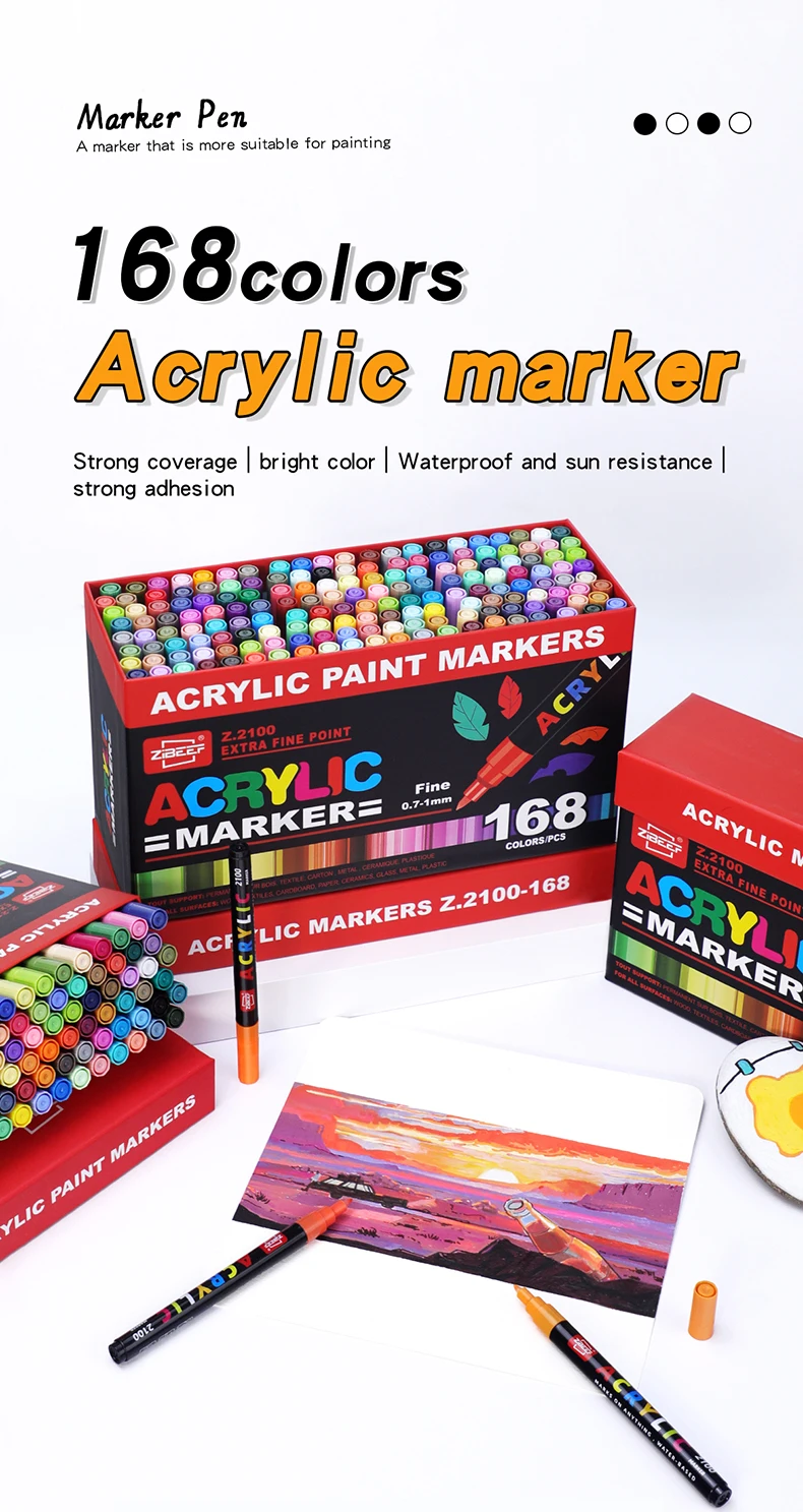 36/60/84/120/168 Colors Acrylic Paint Marker Pens Set Markers Artist Rock Painting Glass Ceramic Fabric DIY Card Art supplies