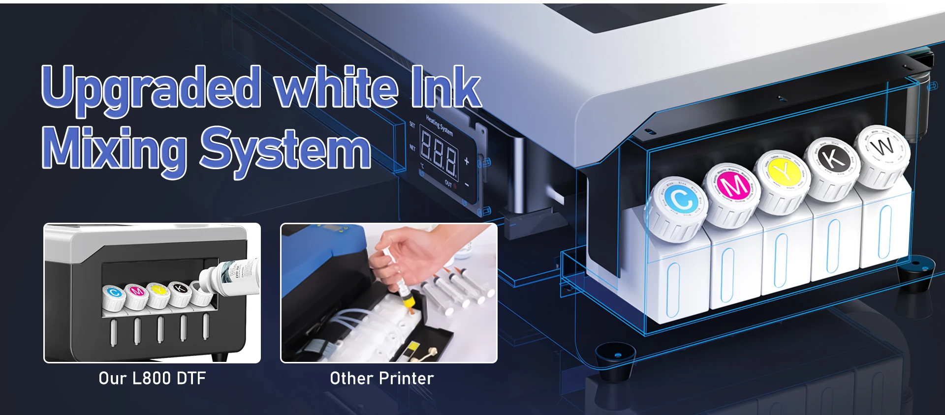 1.White ink system: With white ink stirring and Circulation to prevent white ink clog the print head.