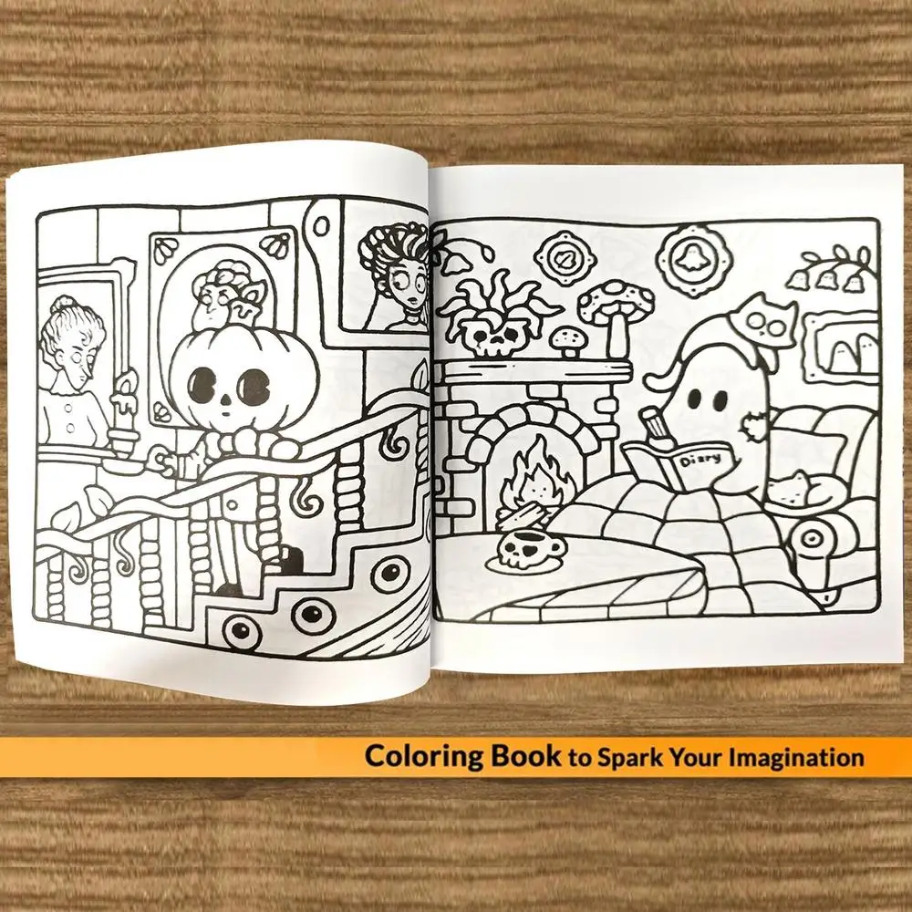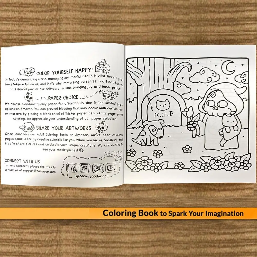 2.Reduce Stress: Take a break and unwind with our adorable yet spooky coloring book filled with intricate designs that ease your mind and help you relax, perfect for destressing after a busy day.