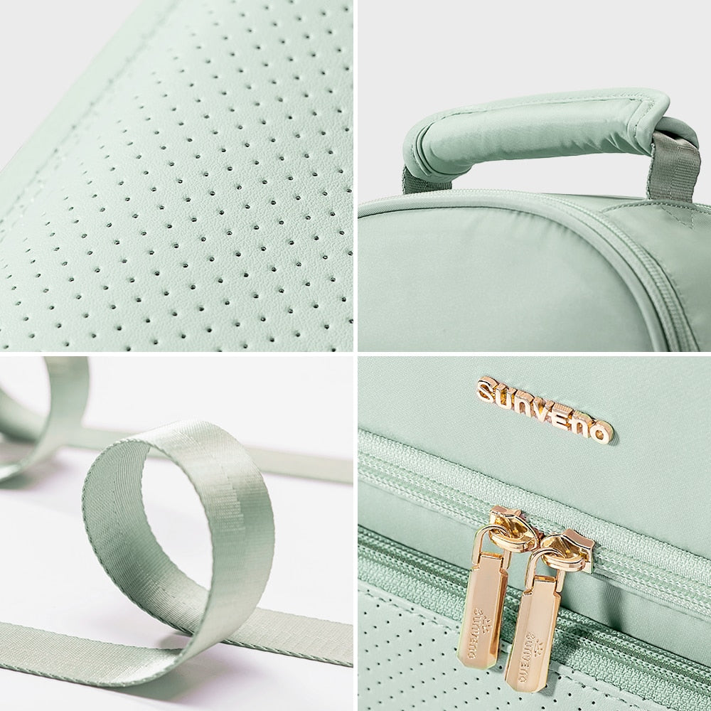 This Insulated Bag boasts high-grade components, providing functionality and aesthetic charm. The top is perfect for a feeding pump, while the bottom offers ample space for bottles and meals, as well as two separate compartments for beverages. Ideal for use as a work or school lunch bag, this insulated bag is also great for nursing needs, a mini picnic, and contains a rear pocket for your phone. Additionally, it makes an excellent gift for friends and family, excellent for back-to-school or birthdays!
