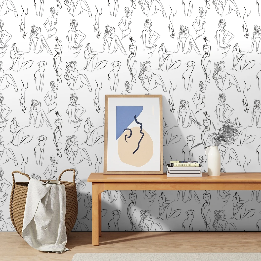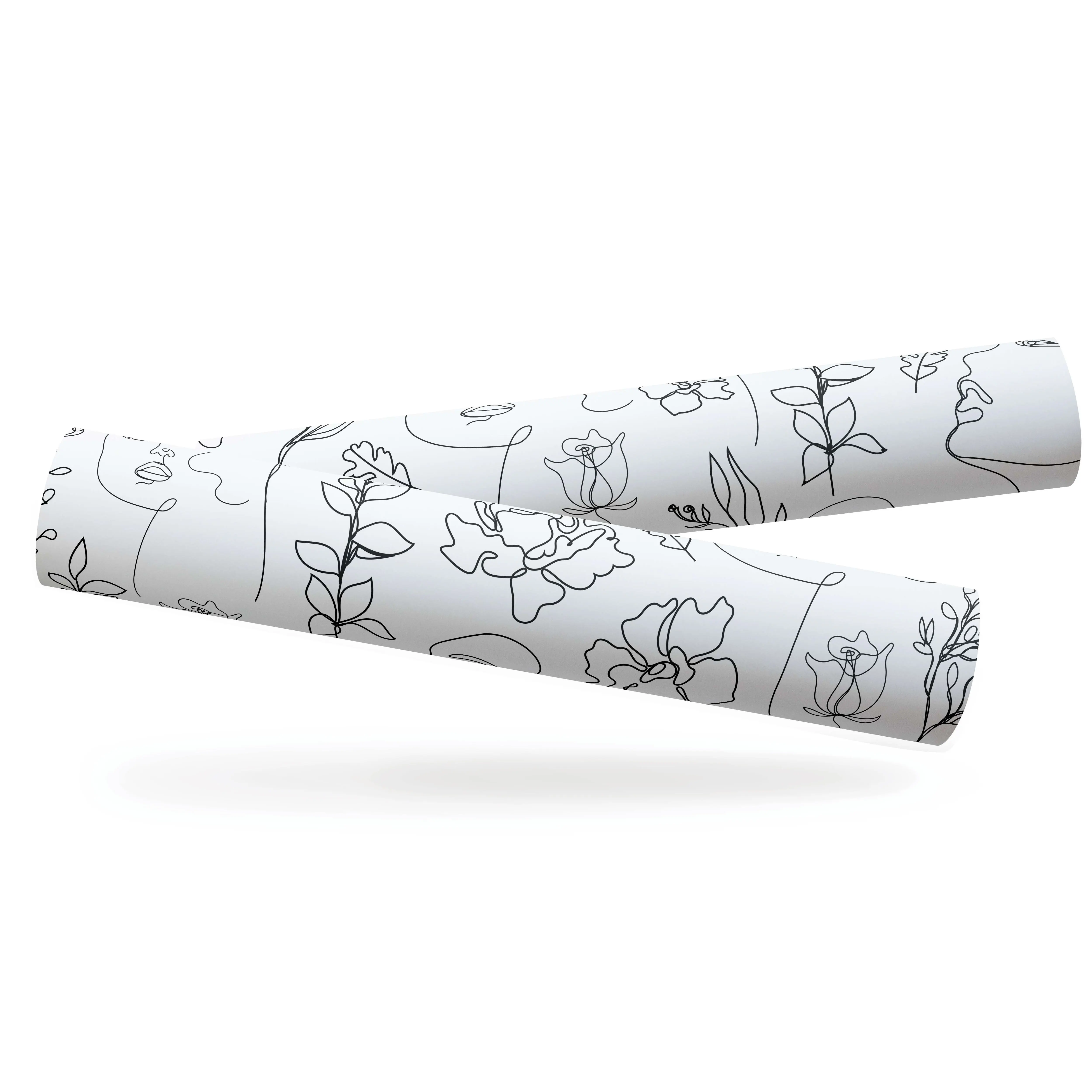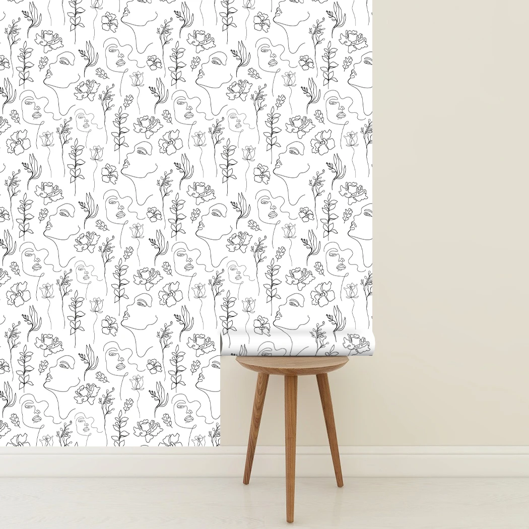 Peel And Stick Wallpaper Abstract Female Art Light Grey Flower Leaves Removable Contactpaper For Home Bathroom Decorations