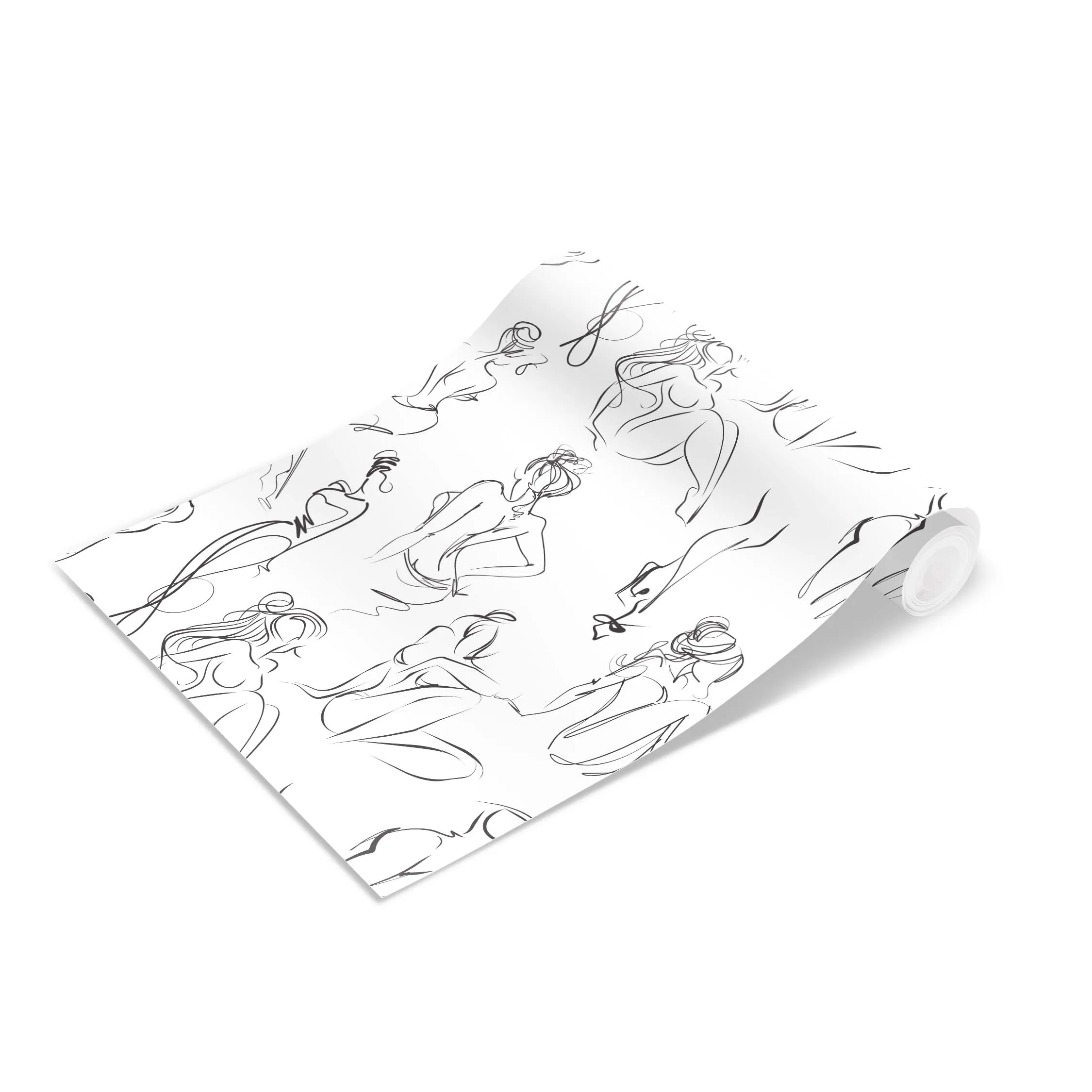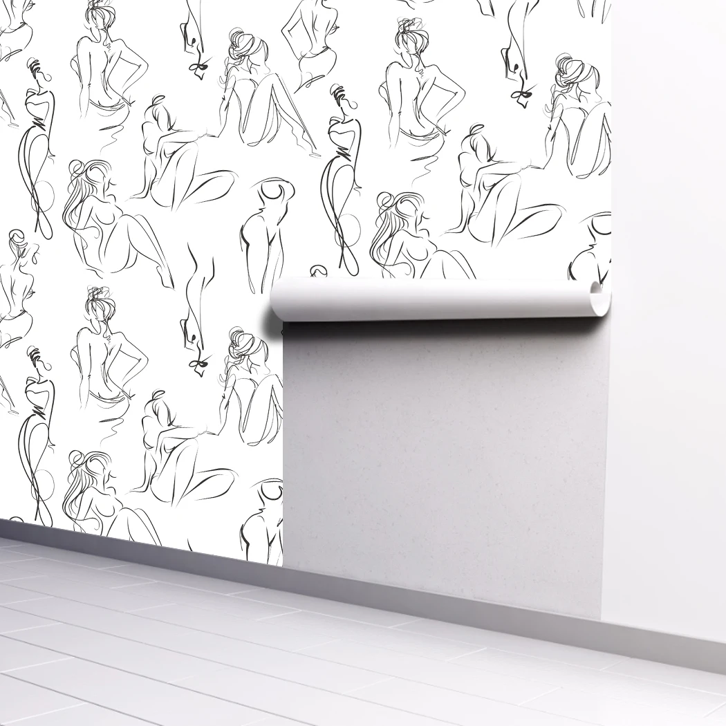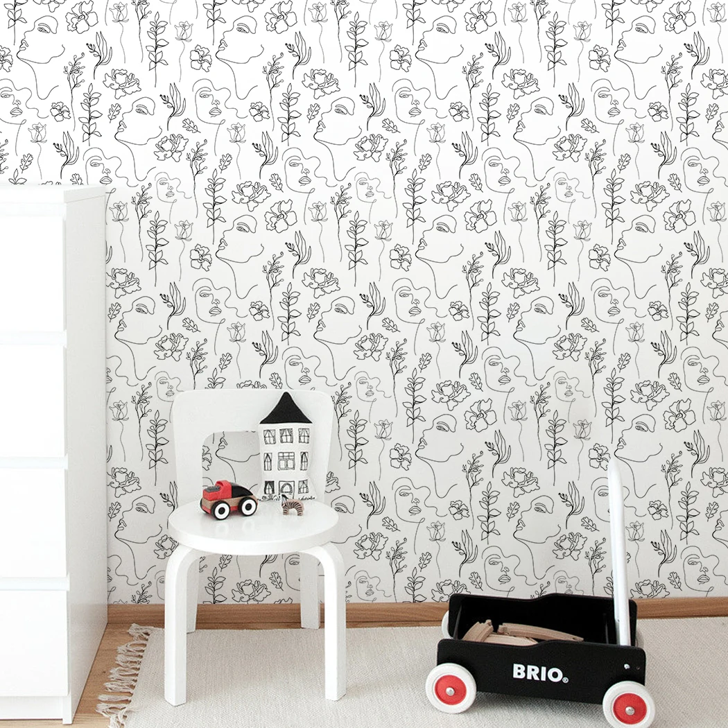 Peel And Stick Wallpaper Abstract Female Art Light Grey Flower Leaves Removable Contactpaper For Home Bathroom Decorations