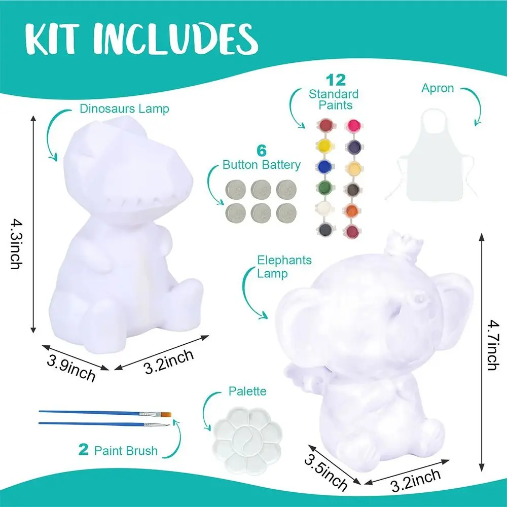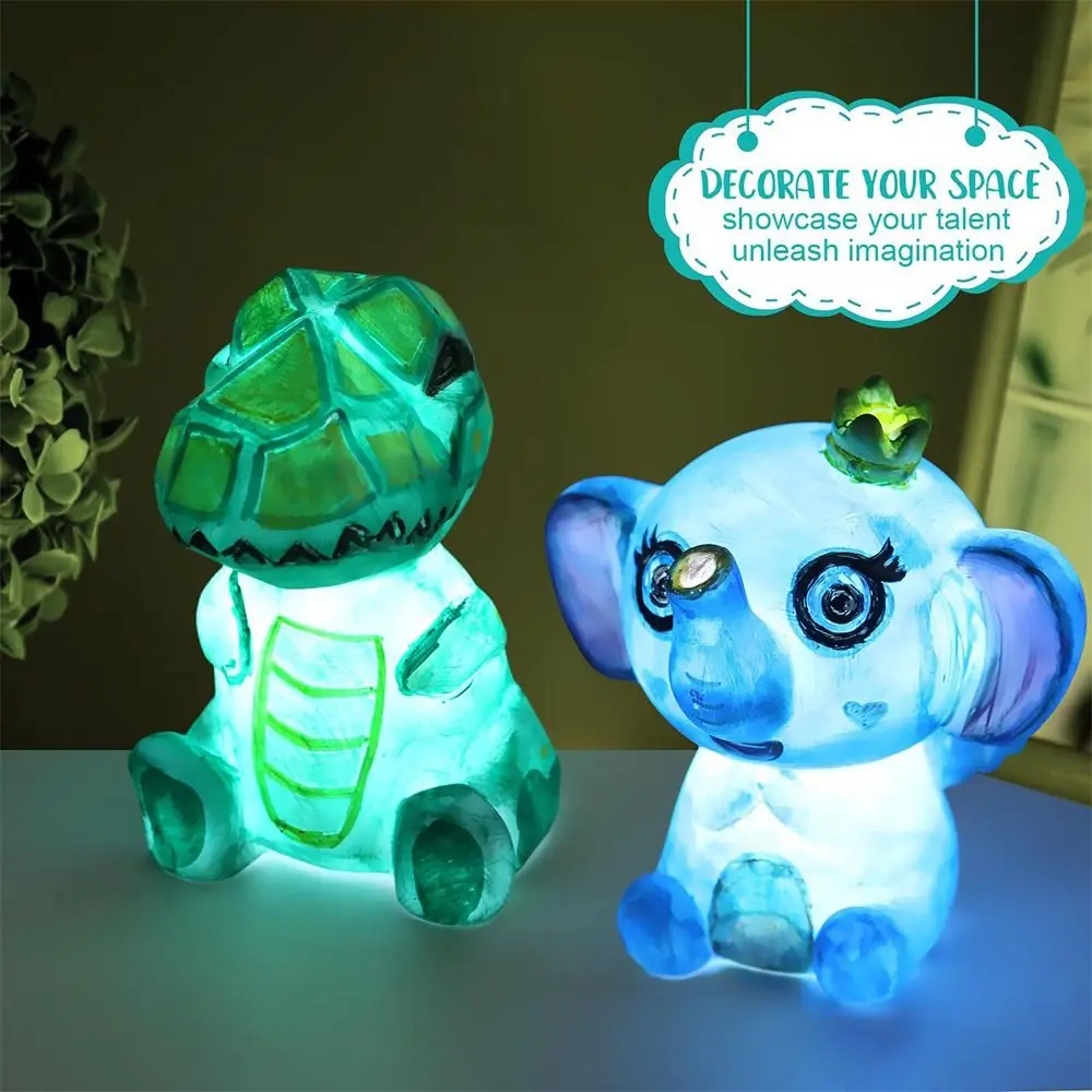 Vinyl Painting Lamp Kit Animal Pattern DIY Material Dinosaur Lamp with Brushes Elephant Lights Painting Art Supplies