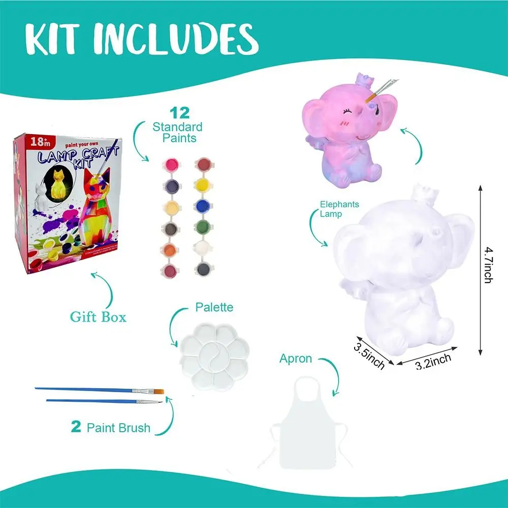 The craft kit includes 2 lamp, 12 paint pots, a palette, and 2 brushes. This night light kit promises hours of fun and creativity for kids ages 4-12 who love arts and crafts.